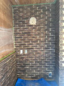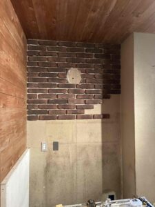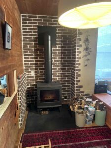 こんにちは竹内タイルです、今回は個人様のお宅で暖炉用の壁にタイルを張りました。