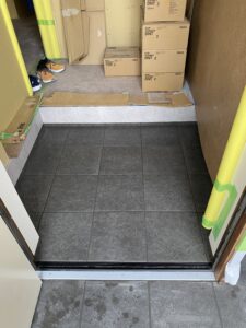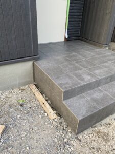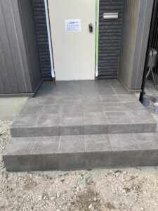 一般住宅の玄関タイルです、この色合いは外壁のサイディングにもとてもマッチしていていい感じです。 竹内タイルでは新規の玄関ポーチや玄関タイル張替えなど様々なことに対応しています。 お気軽にお問い合わせください(*^▽^*) 色合いや最新のタイルなどもアドバイスいたします。